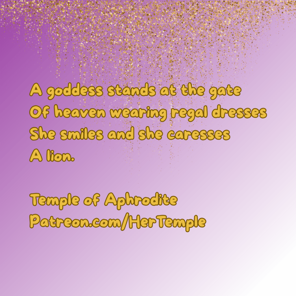 Ishtar, a super ancient Love goddess and likely an Aphrodite predecessor, was this goddess, she was a goddess of war and love, and she had lion pets.