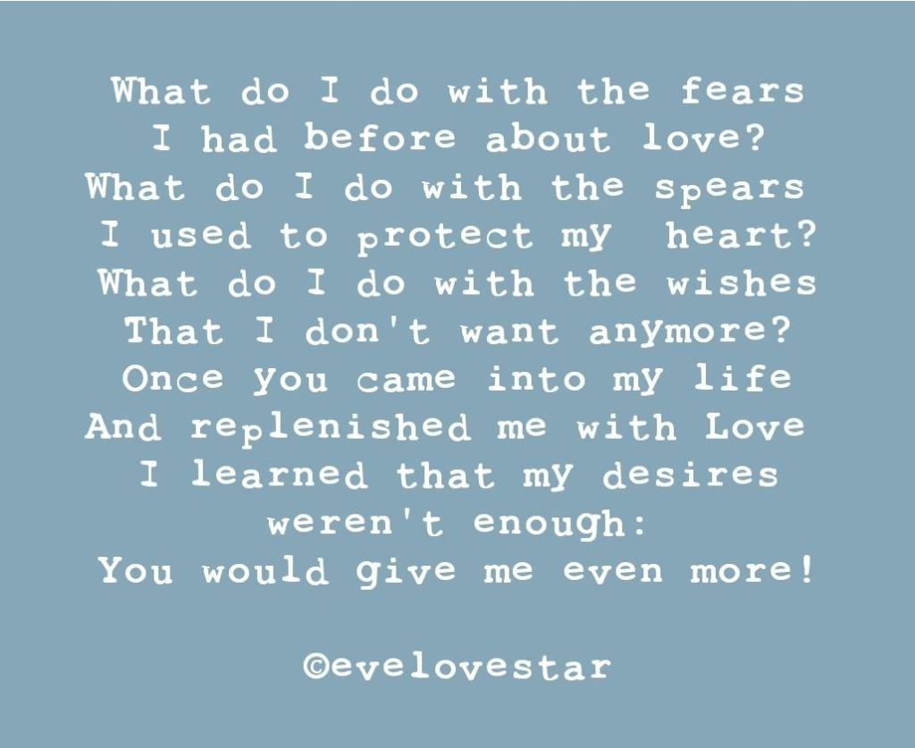 Follow me on Twitter/ X @evelovestar. I have followed a bunch of poets and, of course, spiritual folk, and I’m sharing their best poems, too.