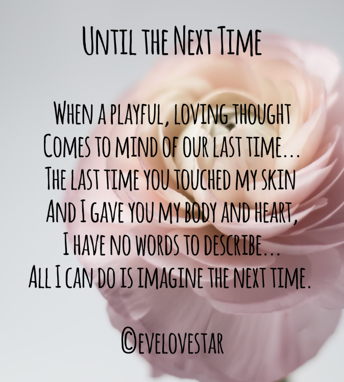 Touch me poem by Eve LovestarUntil the next time poem by Eve LovestarReset my crazy by Eve LovestarI’ve done you right poem by Eve LovestarNext to you poem by Eve LovestarMy desire for you by Eve LovestarLove magic poem by Eve LovestarBeloved poem by Eve LovestarLove poem by Eve LovestarWhen our universes align poem by Eve LovestarRomantic Love Poetry by Eve Lovestar