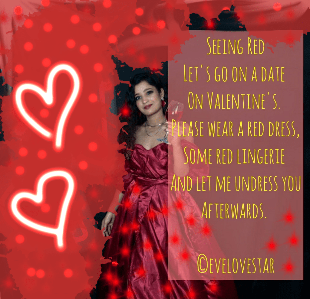 I have talked too much… Valentine’s is your excuse to dedicate a poem if you find it difficult the rest of the year or if you feel your person would not be impressed by poetry. Is a love poem too much to share? I’m a modern poet, I write about sex too, luckily š. Dedicate a sex poem, and suddenly, it’ll be cool. Of course, I’m pitching my poetry for your Valentine’s card, but hey, they’re all free!
