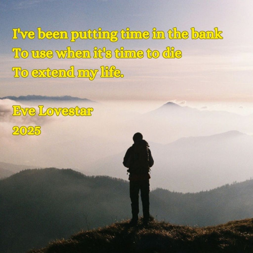 This poem suggests that you have a deep understanding of life’s impermanence. The concept of “putting time in the bank” reveals that you see time not just as a passing currency but as something that can be invested in, with the intention of extending or enhancing the quality of your life.
