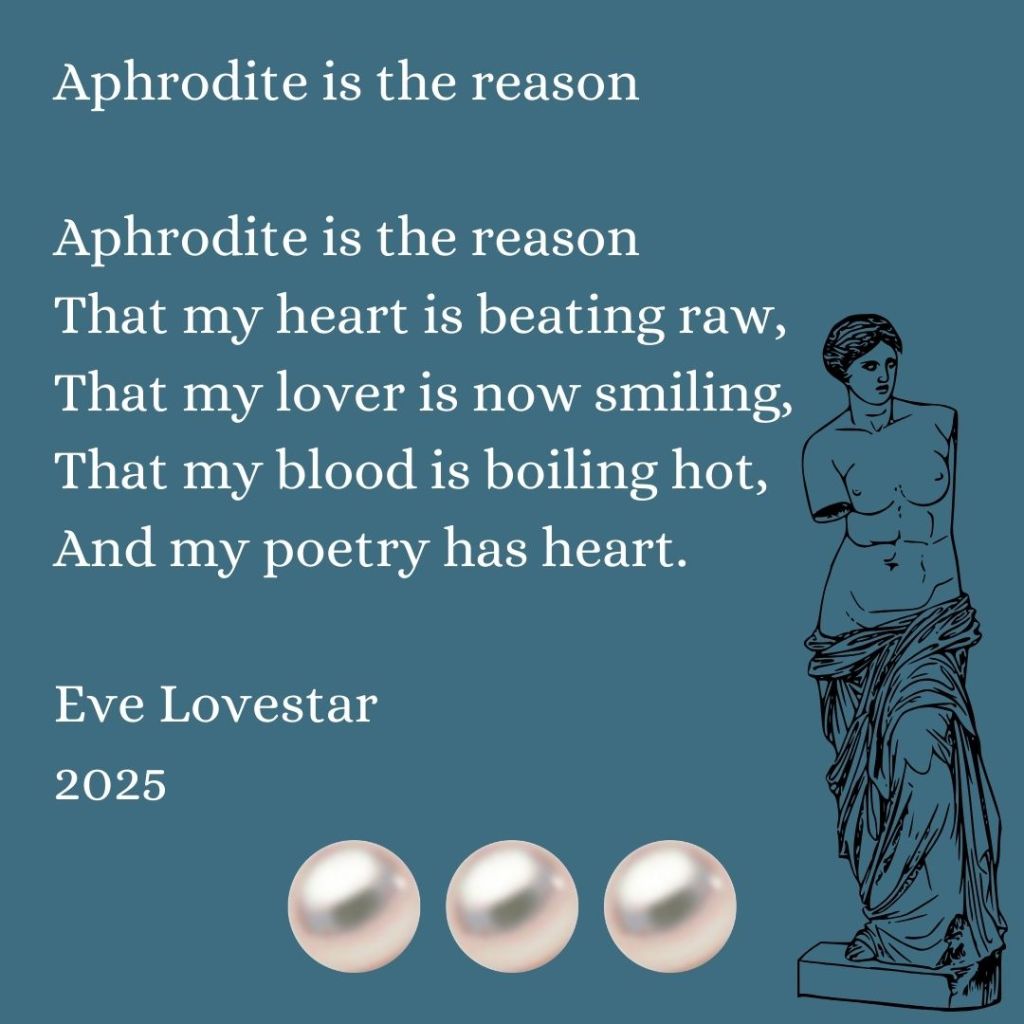 I did not want to blog about being part of Aphrodite’s cult, which I guess I did not join; however, it is true that I have been in communication with her. Several eye-opening conversations and several poems.