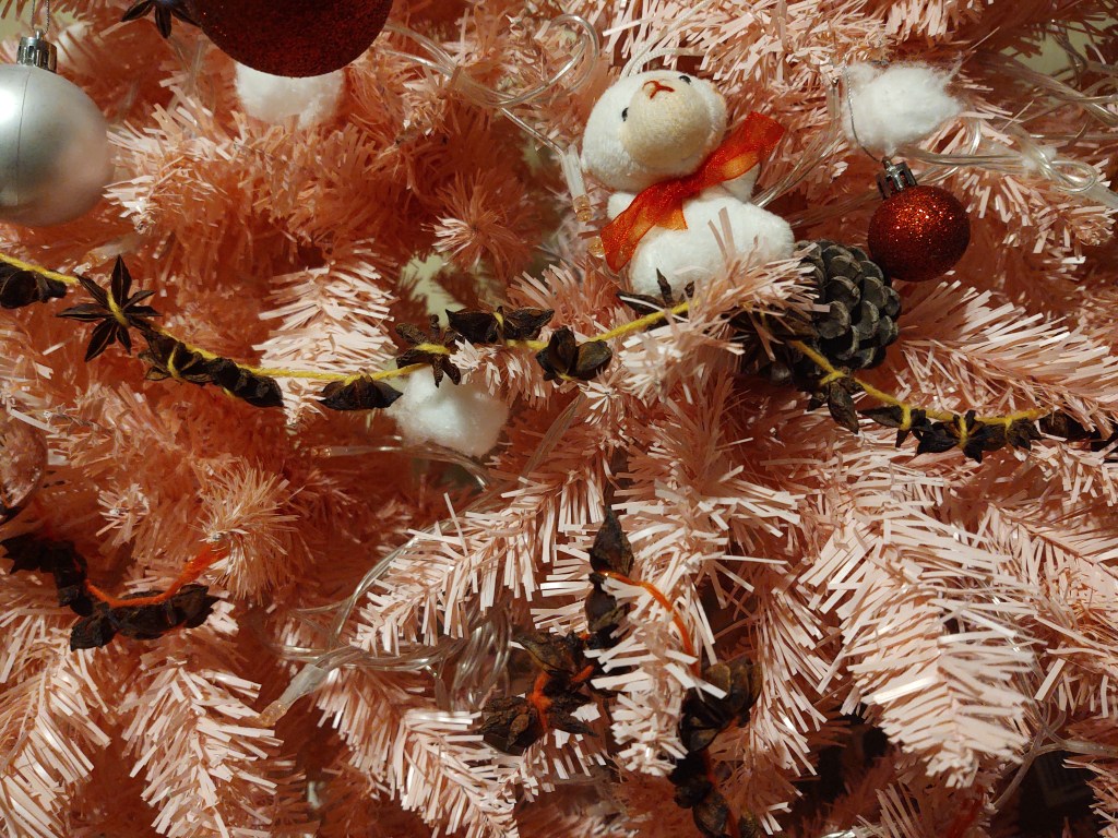 This year I started decorating with cinnamon sticks and I loved having a reason to buy them because I only used cinnamon powder previously. I love the cinnamon smell. I also started decorating with star anise seeds wich I had a ton leftover from when I was breastfeeding because Star Anise is fabulous for milk production, the leftovers I had still smell delicious even though they’re a few years old, I used them to make garlands with my children and they absolutely loved the experience, we put garlands on our Christmas tree and also I hung them on the wall. It was super special, super fast and easy to craft these with the kids and the smell is just delicious. I will leave a few Links of some videos that I made with my kids about making the garlands and decorating our tree with them and some pictures of the decorations