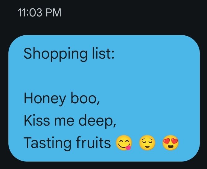 Scorpio asked me to send him a shopping list for honey and fruit, I sent him this -