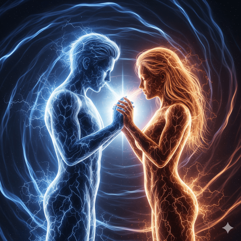 In Jungian terms, this is the transcendent function: the emergence of a higher state of consciousness born from the meeting of opposites. In spiritual terms, it is the sacred marriage, the alchemical blending that turns two into one without loss of individuality.